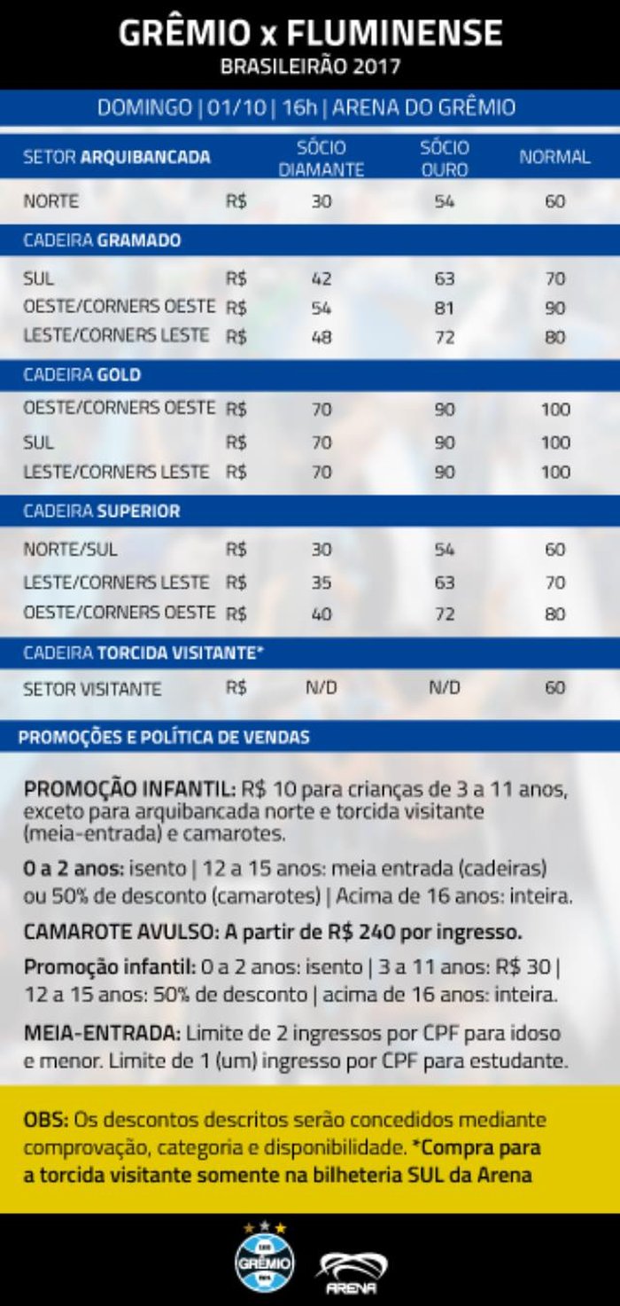 Domingo (17), às 16h, na Arena, em Porto Alegre.